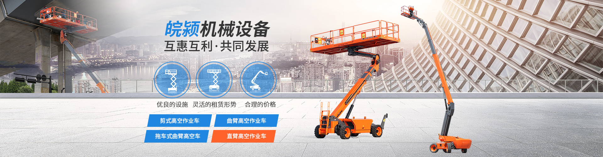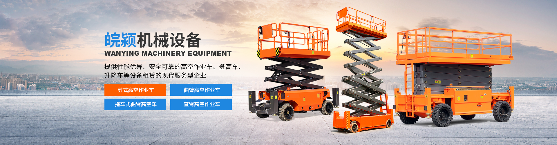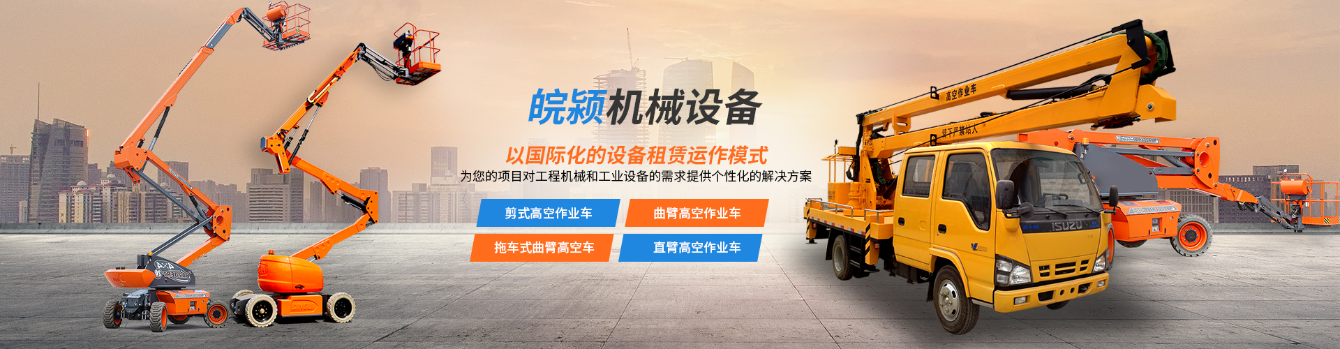 苏州皖颍机械设备有限公司各种需要高空作业的企业提供性能优异、安全可靠的高空作业车、登高车、升降车等设备租赁的现代服务型企业。公司以国际化的设备租赁运作模式,为您的项目对工程机械和工业设备的需求提供个性化的解决方案。